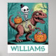 Personalised Halloween Skeleton Riding Dinosaur Poster