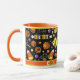 Creative Halloween party mug coffee cup featuring trick-or-treat candy. To personalise edit text to add his or her name.