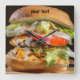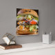 Personalised hamburger photo wall clock. Replace the photo with one of your own or keep the hamburger image. Add your own text, top centre, or clear the text field for no text.