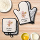 Personalised Hand Drawn Whisk Spoon Modern Oven Mitt & Pot Holder Set