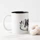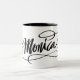 Personalised hand lettered coffee mug with the name Monica. Trendy artistic script hand lettering design with swirly swirls. Black and white 11oz drinkware for home or office. Cute Birthday gift idea for friends and family. Stylish calligraphy artwork cup.