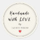 Personalised Handmade with love in modern script on off white background. Adds a pretty finishing touch for all of your handmade gifts.