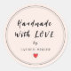 Personalised Handmade with love in modern script on pale pink background. Adds a pretty finishing touch for all of your handmade gifts.