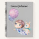 A boy and a rabbit float to space on balloons. Customisable so you can change colours and personalisation. You choose interior paper but we had handwriting practice paper in mind for a pre-k student to practice handwriting.