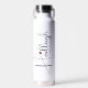 A handwritten style script name personalised water bottle for your bridesmaids, with a cute little red heart interacting with the typography. You may use the design tool to click on the heart and move it around to suit your own aesthetic for this design, or leave it as is.