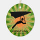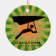 Hang Gliding Personalised Ornament Christmas 20XX against a green and orange starburst background. All text customisable, front and back!