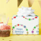 The design is of colourful orbit featuring the colours red, green, purple, yellow, and blue colours along with two (2) customisable typography fields for wish, which currently reads "Happy Birthday!" and name and date or other personalisation.