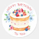 Sweet personalised birthday stickers. Happy Birthday to you. Vanilla whipped cream cake with blueberries and strawberries. Ai art illustration in a watercolor style.