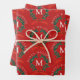 Personalised Happy Holidays Red Monogram Wreath Wrapping Paper Sheet