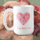 Customise my unique hand painted watercolor mug for a sweet Mother's Day gift. I had fun painting these blush pink and peach loose roses in a heart shaped form. They are not perfect but they are loved, just like us. Simple, minimalist script says, "Happy Mother's Day". Add your mum's name to personalise this cute pink chic typography. You can also add a personal message by customising the text that says, "We love you Mum" I hope you enjoy this simple, modern, trendy Mother's Day coffee mug. Share this mug with your mother, step mum, grandmother, or mother figure for a personalised Mother's Day gift. This cute original watercolor design will make anyone smile.