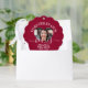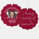 Personalised Heart Photo Memorial Script Ornament Card, a simple and modern design featuring elegant customisable calligraphic script text, sans-serif oldstyle distressed font, custom name, date and photos. "Forever in our hearts" can be edited with a personalised sympathy quote. Perfect as holiday decor or simpathy gift tag. No minimum order. The Memorial Button Background is a deep red, you can change it in any colour.