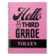 Personalised Hello Third Grade notebook. Personalised School Notebook is perfect for students. Customise it with your name for a chic girly unique look.