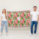 Personalised throw blanket: Classy and fresh seamless pattern composed with red hibiscus flowers and leaves on light background. Custom Monogram included into white round shape. Don't forget the whole collection.