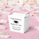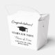 Personalised High School graduation party Favour Boxes with handle. Elegant black and white template with tassel cap logo. Classy design for senior grad students and guests. Fill with sweets, cookies, cake, cupcake, candy etc. Printed on two sides.