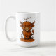 Bring cozy charm to every sip with this personalized Highland cow name mug, designed for animal lovers who adore cute, rustic artwork. Featuring an original flat vector illustration with warm, realistic tones, this mug can be customized with a name to create a thoughtful and memorable keepsake.