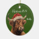 Personalised Highland Cow with Santa Cap Ceramic Ornament