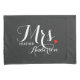 Mr. and Mrs. - His and Hers honeymooners pillowcase set in stylish white script text - shown on chalkboard-look slate grey. Customise the couple's last name, first names, wedding date, or change the colours, add monogram initials, or special saying to create a truly unique personalised keepsake for the new bride and groom. Perfect novelty gift for bridal or couple's shower, bachelorette party, engagement, housewarming, hostess, or milestone anniversary. Click Customise It to change the fonts or add your own custom text.