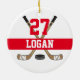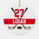 Personalised Hockey Player Name Number Red Christmas ornament with hockey sticks