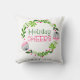 Personalised Holiday Cheers Wreath Pink & Green Throw Pillow