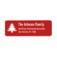 Custom, personalised, festive red and white, christmas tree, christmas holiday season return address label. Simply enter the family name / bride & groom's / wife & husband's names, and address, to customise.