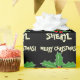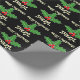 Personalised holly leaves Christmas wrapping paper. Whimsical Holly leafs and berries design. Black, green and red Merry Christmas giftwrap for kids and adults. Playful Holiday pattern print with custom seasons greetings message. Personalizable with name of adult or child. Black or custom background colour. Add your own name and wishes. Trendy party supplies for festive occasions.