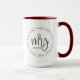 Her first Christmas as a Mrs. is a special time. Give her a gift to show off her new last name. Personalise this Christmas mug featuring my modern holiday wreath with green and red holly. Elegant and chic "Mrs." script typography. A cherished gift she'd want to use every year during the holiday season.