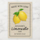Rustic homemade limoncello food labels featuring a burlap background, lemons, and a text template that is easy to personalise.