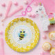 Honey bee or bumblebee themed baby shower plate, yellow and black gender neutral theme. Personalised this plate in the customise area.