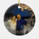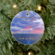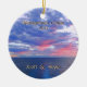 Beautiful evening ocean honeymoon cruise photo ornament shows a brilliant cloudy sunset sky in shades of pink, purple blue and orange with the cruise ship wake in the foreground. Reads Honeymoon Cruise and personalised year in top and newlywed names on bottom. Or edit with personalised text of your own. Perfect for a honeymoon cruise memento or destination wedding souvenirs. Edit and customise however you wish- add customised message. Even change the ocean sunset photo to your favourite customisable cruise photo. Personalised commemorative keepsake ornament of honeymoon cruise ornament. Other side of ornament has newlyweds couple photo with border of scrolls and dainty hearts in gold and copper tones. Perfect personalised holiday gift for newlyweds.