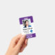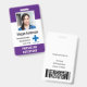Personalise these vertical medical personnel badges with an employee photo and name, along with multiple custom text fields for hospital or healthcare facility name, unit or floor, title abbreviation, employee ID number, or valid through date, along with the medical centre logo. The title or role appears along the bottom in bold white lettering for easy identification. Customise with a barcode on the back if needed, along with return information or other details.