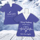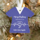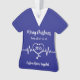 Personalised Hospital Christmas ornament with a blue scrub and a stethoscope illustration. Customise it with the name, year, and logo on the back. Change the colours by clicking the button to edit the design.