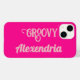 This is a stylish, personalised, design. It is in trending hot pink and pink, with retro typography. It has the word "Groovy" and space for you to add your name. It would make an ideal personalised gift or as a stylish, vintage inspired addition to your phone accessories. To personalise, simply add your name in the personalise this text box. Here you can also change the word "Groovy", as well if you want to. To customise, check out the design editing tool. For help with personalisation, matching products, or for a custom design, message me via zazzle chat or email: ursuladawnmoon@gmail.com