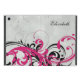 You can personalise the name on this elegant and pretty magenta (fuchsia, hot pink) black and grey abstract wavy floral iPad mini folio style case. To change the name, use the personalise it feature. For more extensive changes to the text, such as changes to the font, font size, font colour, or text placement, use the customise it option.