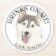 Personalised Husky Dog Wedding Round Paper Coaster