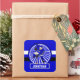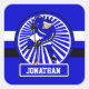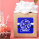A sports design with an ice hockey player in blue and white with black trim with an accent with customisable text for the name of the ice hockey player, hockey coach or ice hockey fan to create a unique and personalised hockey gift.