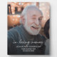 Personalised in loving memory photo plaque is a meaningful keepsake designed to honour and celebrate the life of a loved one. This elegant memorial plaque features a full-photo background, making the image of your choice the central focus, while the bottom section includes customisable text for the name, dates, and a personal message or quote. The soft, modern script of “In Loving Memory” adds a heartfelt touch, balanced with clean typography for the personalised details, ensuring the design is both stylish and sentimental. Set against a glossy finish, the layout beautifully enhances the photo, creating a timeless tribute that brings comfort and remembrance to family and friends. Perfect for funerals, celebrations of life, or as a sympathy gift, this custom photo plaque can be displayed on a table, shelf, or mantel as a lasting reminder of cherished memories. Its versatile design makes it suitable for honouring loved ones of any age, and the ability to include a favourite quote or short message makes each piece unique and deeply personal. Whether given to relatives, shared with guests at a memorial service, or kept at home as a private remembrance, this custom memorial plaque serves as a beautiful way to celebrate life, preserve treasured moments, and keep the memory of someone special forever close.