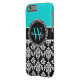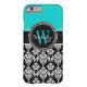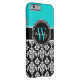 Personalised Initial Aqua Black Damask Pattern Case-Mate iPhone Case