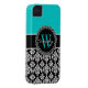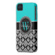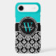Personalised Initial Aqua Black Damask Pattern Case-Mate iPhone Case