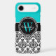 Personalised Initial Aqua Teal Black Damask Case-Mate Samsung Galaxy Case