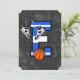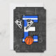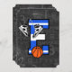 Fun Basketball design for the young ice basketball player or basketball fan. Feature the letter E in blue and white team colours with Basketball high tops and basketball. Background features chalkboard design basketball terms and images