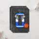 Fun Basketball design for the young ice basketball player or basketball fan. Feature the letter O in blue and white team colours with Basketball high tops and basketball. Background features chalkboard design basketball terms and images