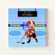 Fun hockey design for the young ice hockey player or hockey fan. Feature the letter A in red and white team colours with co-ordinating hockey stick, helmet , skates and puck. Background features ice hockey rink with customisable scoreboard for your personalised message
