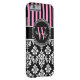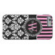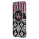 Personalised Initial Pink Black Damask Stripes Case-Mate iPhone Case