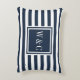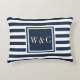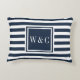 Chic personalised navy blue and white striped accent pillow featuring a navy and white bold square initials monogram. Ideal gift for a wedding or a housewarming gift. You can personalise the initials and customise the colour to a colour of your choice. Designed by Thisisnotme©