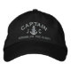 A personalised Initials and Text captain Silver Star nautical anchor symbol fine embroidery design. A sporty custom nautical style embroidered baseball cap gift for yourself or for a special captain, great for on, or off the boat.