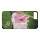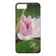 Elegant iPhone case with pink and white Water Lilly flower photography and monogram.