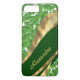 Personalise this pretty chic and elegant girly lucky Irish shamrock floral pattern design, and bright green and gold swirl ribbon pattern graphic with his or her name or monogram initials to the customisable text templates to create a special unique stylish case to protect your device. This stylish elegant sophisticated green shamrock design, would be great for any of Irish man or woman. easily add your own name or text to the stylish elegant green golden colour ribbon template. Visit the CUSTOMIZEDSKINS STORE for matching cases. PLEASE NOTE the gold metal colour is not metallic.