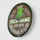 Easily Personalise this distressed wooden effect Irish pub sign made to look like an old beer barrel keg and and green beer graphic with a lucky green shamrock clover with your own text or name for your St Patrick's day drinking celebrations. Visit the PADDY_O_DOORS store to for matching products and more St Pat's day gifts. CLICK CUSTOMIZE to adjust the text size, or font you can also CLICK CUSTOMIZE to change the outer green rim background colour from a range of over 200 colours.