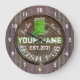 Easily Personalise this distressed wooden effect Irish pub sign made to look like an old beer barrel keg and and green beer graphic with a lucky green shamrock clover with your own text or name for your St Patrick's day drinking celebrations.