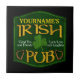 Add your last name or other custom text to this cool Irish Pub merchandise "Your Name's Irish Pub". Very cool personlized gift for St. Patricks day, Irish heritage or any time of year. Grunge vintage look green background with frame shape and celtic text, harp and "good fun and friends", and "luck, love and laughter". All Designs Copyright © 2013 www.CuteComfy.com